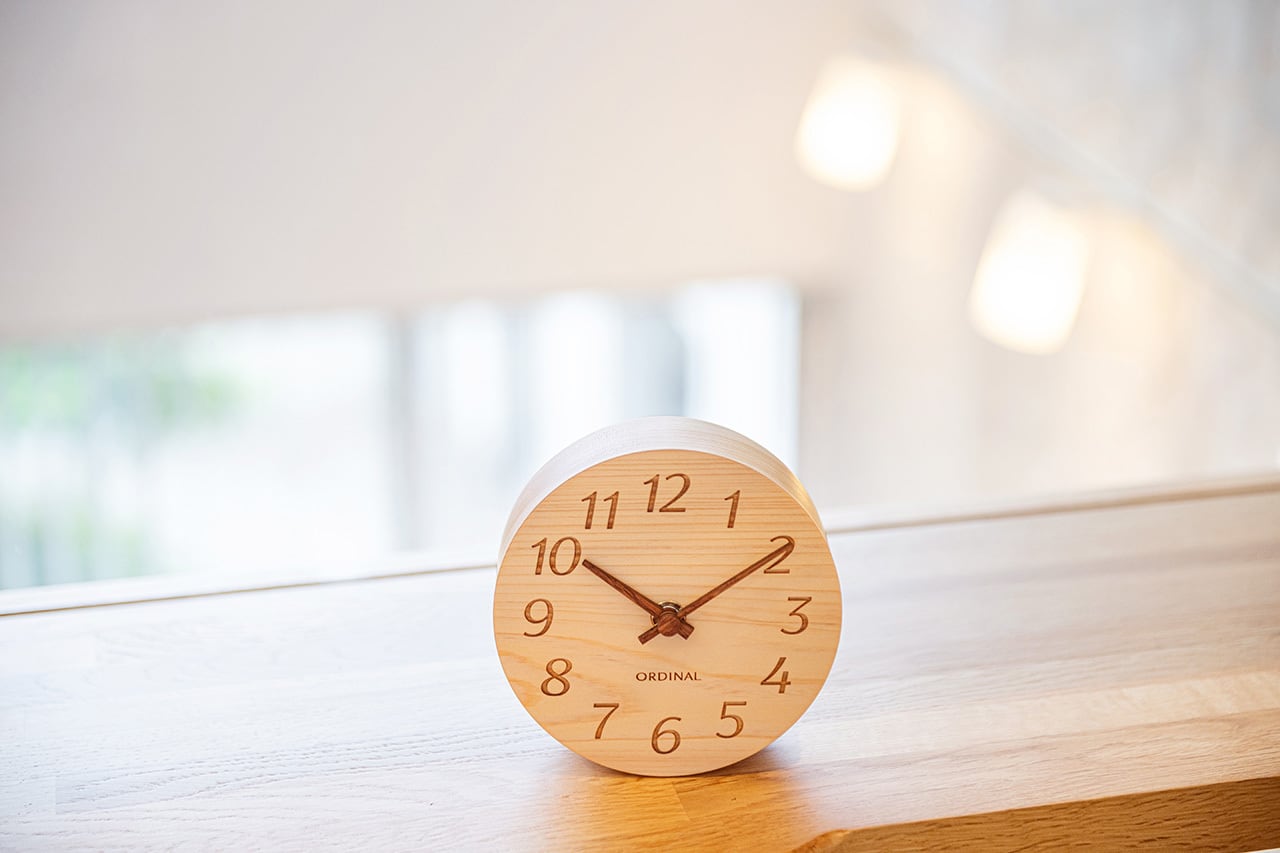 無垢の1枚板から切り出したORDINALの置き時計シリーズに、徳島県産ヒノキをつかった『HINOTOKI』が新登場。